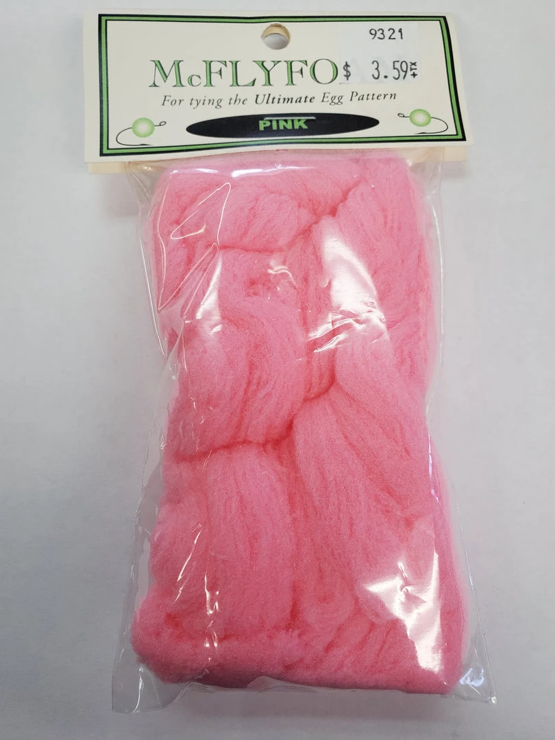 A strong, stretchy continuous filament yarn which is dyed with colorfast dyes and will not fade. This is the easiest yarn to tie, cut, and trim for eggs and sculpted patterns like sculpins and woolhead flies.