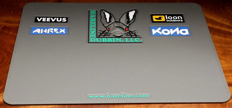 The dimpled surface of this nice, big pad will keep your hooks and beads from rolling or sliding away. The smooth surface on the reverse side can be used for adhesives or epoxy and they will not stick, making it easy to clean. Great for setting up your work space and protecting the finish on your home tying bench.
