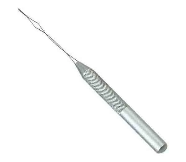 By inserting the wire tip of the Terra Deluxe Bobbin Threader into the end of the barrel on your thread bobbin, you can quickly and easily rethread your bobbin. The knurled handle makes it easy to pick up and maintain a comfortable grip.