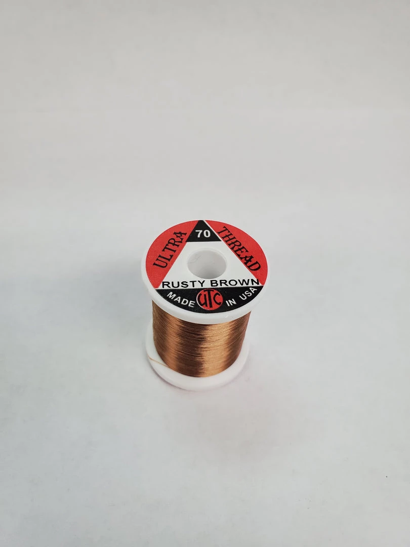 70 Denier Ultra Thread is approximately the same as the 8/0 uni that we sell but seems to work better for all around. Has a breaking strength of 1lb. Officially recommended for size 14-32 flies.