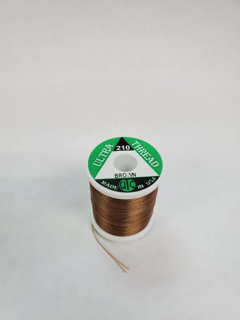 UTC 210 is an excellent for deer hair, steelhead, salmon, saltwater, and other flies in the 1/0 to 12 size. The breaking strength of this thread is about three pounds.