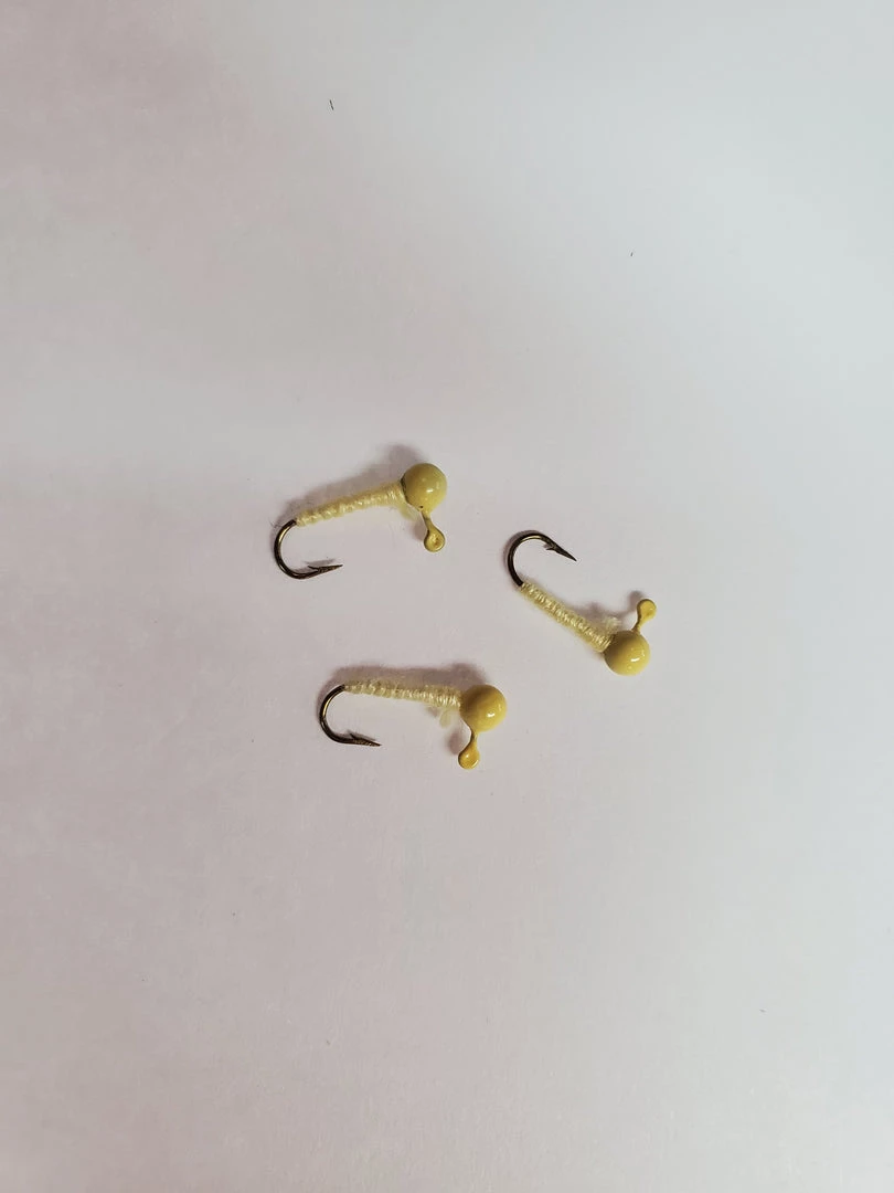 Mini Jigs 1/100 ounce sold in set of three Premium Locally Hand Tied Mini Jigs Sold in Size 8 & 12.